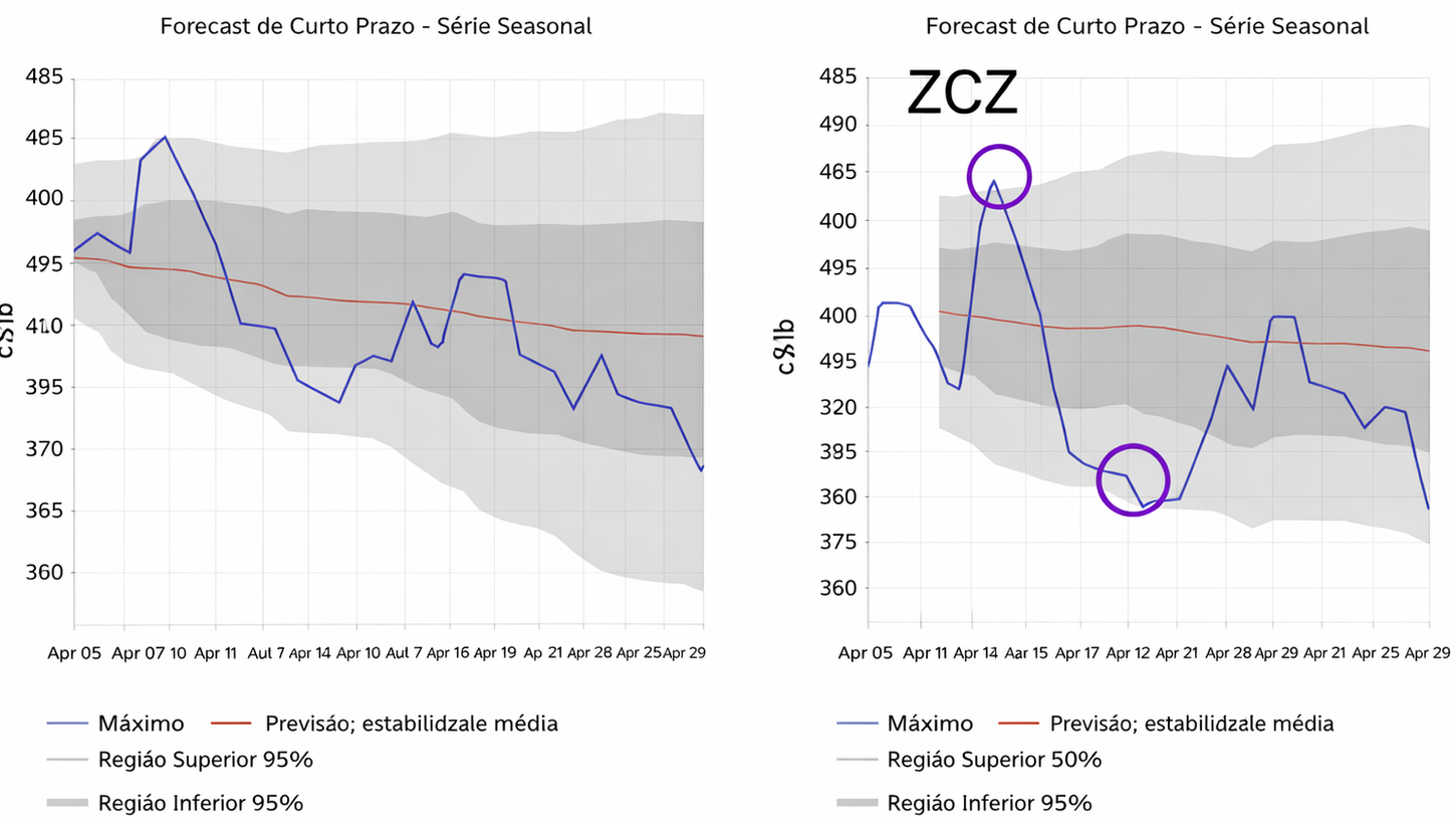Identificamos janelas táticas de compra quando a probabilidade de alta cai e o basis enfraquece, gerando menor custo médio e capital de giro mais leve.